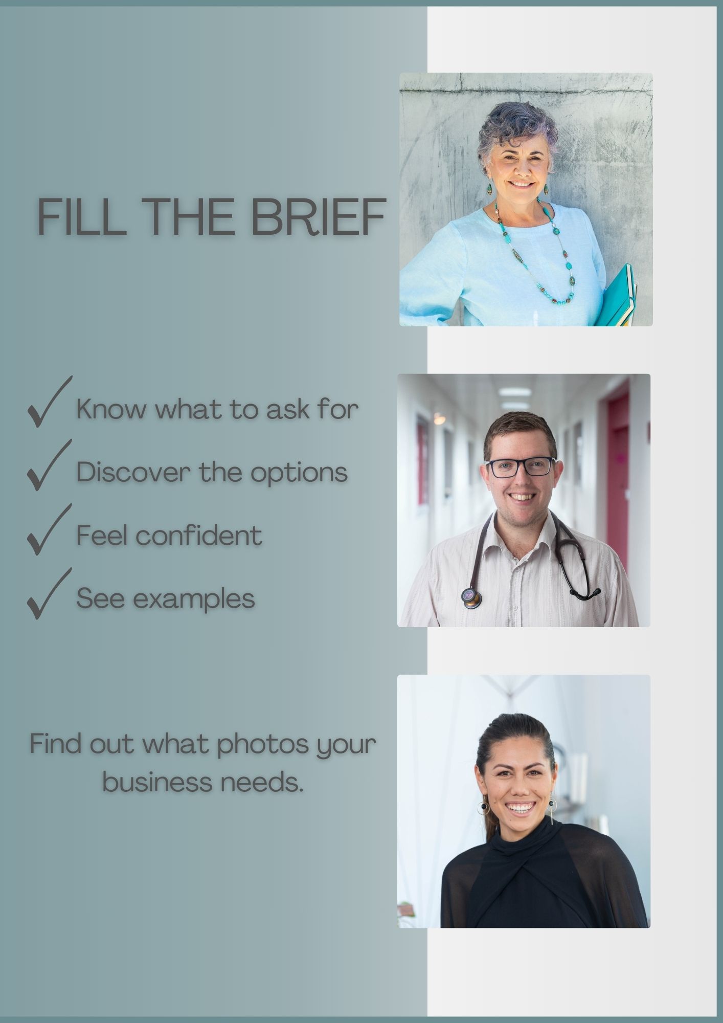 This is great for a full update of your branding imagery. Includes headshots, branding and product in use.